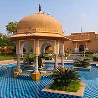 Amanbagh is 20 minutes from the Sariska park, the surroundings are beautiful, it grows its own vegetables and there is no hotel quite like it anywhere in India.