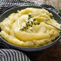Whatever the reason, he re-invented the dish using just four ingredients. He used ratte potatoes (a small, French variety) lots of butter (one pound of butter for two pounds of potatoes), some milk (a quarter cup for two pounds of potatoes) and salt to taste.